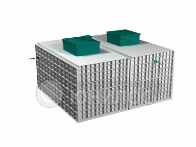 Автономная канализация для дачи АСТРА 150 мидиТехнические характеристики: Количество постоянно проживающих — 150 человек Переработка стоков за сутки — 30 м3 Залповый сброс, максимальный — 4600 л. Потребляемая энергия, сутки — 21 кВт. Масса — 2700 кг Размеры, м — 2625 x 4320 x 4000